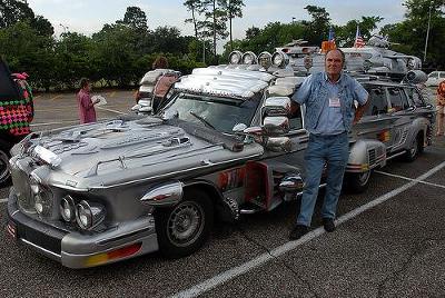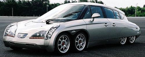 いかにもな未来カー。八輪あると、乗り心地もかわるのかな。